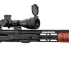 Le canon mesure 46 cm (18’’) au pas de 1/9 en calibre 222 Remington. Il est terminé par un cache flamme de type A2 vissé sur un filetage au pas de 1/2x28 qui peut également accueillir un réducteur de son si vous souhaitez tirer de façon plus discrète. Ce canon est vissé sur le boitier de culasse pour accroitre la précision de l’arme. Le devant fourni avec cette H6 est un modèle M-Lock de 15’’ que vous pouvez changer pour un autre modèle de garde main de type AR15 d’Hera. Vous pouvez aussi choisir un garde main avec lanière cuir qui est superbe ! Ce système M-Lock permet la pose d’accessoires sur le devant de l’arme très rapidement comme un bi-pied, un désignateur laser, une torche tactique…