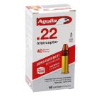 Cette munition 22 Long Rifle Super Extra d'Aguila est encartouchée au Mexique avec des composants de qualité. La balle pèse 2,59 grammes (40 grains). Elle est cuivrée afin de limiter l'encrassement des canons. Cette ogive part à 382 m/s et possède une énergie de 189 joules.