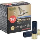 Les séries de munitions ZZ de Winchester jouissent à juste titre d'une excellente réputation ! Ces munitions très rapides sont encartouchées avec soin et limitent les corrections de visée même aux portées extrêmes de la gerbe. En 2020 Winchester lance la ZZ Canard, une munition destinée aux zones humide ou l'utilisation de substituts du plomb sont obligatoires. Cette cartouche est chargée avec 33 grammes de grenaille d'acier recouverte d'une fine couche d'étain afin de limiter la corrosion des grains dans les milieux humides et en surtout en bord de mer. Winchester annonce des vitesses moyennes de 440 m/s pour cette munition spécifique. Elle est proposée en 12/76 et ne peut être tirée que dans les fusils éprouvés pour le tir des billes d'acier.