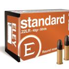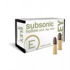 La Eley subsonic hollow porte bien son nom, sa vitesse est inférieure à celle du son, et elle possède une pointe à tête creuse (Follow en anglais) qui facilite son expansion lorsque touche sa cible. Le projectile à pointe creuse, va avoir une pénétration réduite à l’impact mais une expansion immédiate et un pouvoir de neutralisation augmenté. Cette munition de 2,46 grammes (38 grains) affiche des vitesses moyennes de 317 m/s et une énergie de 123 Joules.