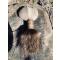 manche recouvert d'une peau de raton laveur , le manche est gainé de cuir de cerf brut cousu avec du tendon de cerf avec peinture amérindienne