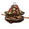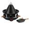 Cuisson de fines tranches de viande, légumes, fruits sur le chapeau conique muni de piques.