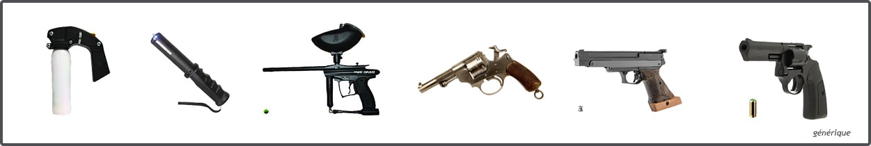 | Alinéa 3° | Armes à feu fabriquées pour tirer une balle ou plusieurs projectiles non métalliques et munitions |