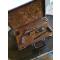 Tres belle ensemble en coffre je depuis 1959 cal 11 mm pour noir avec sa poire a poudre une boite d'amorce vide en bois une tige poussoir et un petit mailler l'interieur du coffre est recouvert de tissus amoir tres bonne fermeture je n'ai plus la clef sons poid 3.200kg une toute petite fente sur le haut de la crosse cote gauche j'ai tiré plusieurs fois avec j'en ai un 2iem vendu seule à 300 euros il est à piston pas à silex