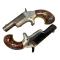 magnifique coffret de deux colt derringer calibre 41 rf par jj crâne london. derringer retenant une grande partie de leur bronzage d origine sur les canons. argenture sur carcasse et vernis sur plaquettes. fonctionnement parfait calibre 41 rimfire un coup . canon avec rayures bien visibles un peu d oxydation. coffret avec baguette de nettoyage et clés. livrer avec pv de st etienne cat D et facture.