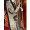 paire de pistolets de luxe par devidme à paris calibre 14 mm. canon octogonal rayé de 10.1 inch bronzés. marquages sur les canons en écriture métallique blanche en relief FMP DEVISME À PARIS. volutes gravées sur carcasses numérotation à l or 1 et 2 sur les pistolets. chiens à têtes de dauphins gravés en suite. crosse en bois d ébène. sculptées. en relief de chaque côté de la poignée et jusqu'en extrémités avant du bois. coffret au nom du fabricant et doublé de velours rouge ( avec qq taches ) l intérieur du couvercle est marqué DEVISME 26 boulevards des italiens arquebusier breveté et contenant un complément d outils et accessoires en ébène. complet. ! magnifique