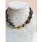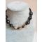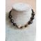 Collier cuir marron cristaluna avec 3 pendentif sphère en cristal acrylique noir swarovski