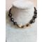 Collier cuir marron critaluna avec 3 pendentif sphère en cristal acrylique noir swarovski