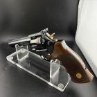 - - Revolver S&W 686 (Arme éligible au TAR) : L'un des principaux intérêts du Smith & Wesson 686 réside dans sa fabrication massive en acier inoxydable, simplifiant l'entretien de l'arme tout en lui conférant une esthétique vintage. Sa masse importante est appréciable car elle assure à la fois une bonne robustesse au tir et elle amortit le recul engendré, permettant des tirs précis malgré la puissance des tirs avec un équilibre intéressant.