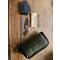 Couteau droit fixe POHL FORCE Custom Edition JAHRESMESSER 2009 en acier D2, série limitée numérotée avec certificat d'origine, étui kydex noir et pochette matelassée de couleur kaki. Longueur lame tranchant lisse de 8 cm, longueur totale avec manche de 18,9 cm; hauteur lame de 3,7 cm, hauteur manche au plus fort de 4,3 cm. Epaisseur acier maxi de 6 mm manche et lame. Poids nu 166 gr (252 gr avec étui kydex). Manche avec 2 plaquettes polymères vissées de 5 mm (+ ou - 1 mm). Emplacements de prise de doigts pour très bonne prise en main. Designed by "SAR". Acheté neuf, jamais servi.