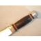 Couteau fabriqué sur le modèle des couteaux US de la seconde guerre mondiale, avec empilement de rondelles de cuir et de bakélite pour former la poignée.