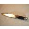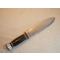 Couteau fabriqué sur le modèle des couteaux US de la seconde guerre mondiale, avec empilement de rondelles de cuir et de bakélite pour former la poignée.