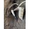 manche en mâchoire de cerf , mitre gainée de lanières de cuir de cerf brut