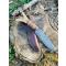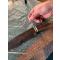 le montage est réalisé à l'époxy 270 kg/cm plus 2 rivets en acier matté traversant l'intégralité du montage , et recouvert de cuir de cerf brut