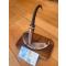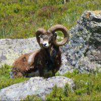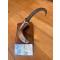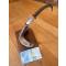 Exercice de style avec manche en corne de chamois, mitre en meule de brocard. L'etui est en bois de cerf évidé, le tout incéré sur une corne de mouflon.