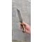 Manche en bois de hêtre et résine époxy teintée en noir, rivets acier. Insert acier trempé dans le manche pour un effet coup de point tout en protégeant les doigts.