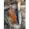 couteau bowie d'artisan / bois de cerf/ acier carbone 1095 / campement, bushcraft....
