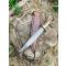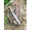 le fourreau est collé et cousu mains aux points de sellier avec du tendons de cerf , ainsi que le passant