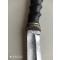 Lame acier de 17 cm sur 8 mm d épaisseur au plus fort ,ancienne,garde et bout de manche en bronze ciselé , poignee en corne noire de gazelle ou oryx , étui cuir avec passant ceinture pour pendre le long de la jambe .très beau et fort couteau de chasse ou autre ..
