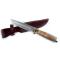 Le Nieto Safari est composé d'une lame fixe en acier inoxydable AN.58 (dureté 58-59 Rockwell) Son manche est fait de cuir avec garde en laiton et pommeau en acier inoxydable. Livré avec un étui de ceinture en cuir brun renforcé. Long.totale 30 cm Longueur de lame 17 cm Epaisseur de lame 4 mm Poids du couteau seul : 273 gr - avec étui : 354 gr