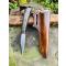 le fourreau est collé et cousu mains aux points de sellier et teinté chêne moyen