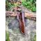 couteau de chasse d'artisan / bois de cerf, loupe d'acacia, acier carbone 80crv2