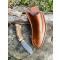 le fourreau est collé et cousu mains aux points de sellier et teinté fauve patiné marbré
