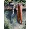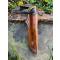 le fourreau est collé et cousu mains aux points de sellier avec du tendons de cerf ( couture extrêmement solide ) et teinté fauve patiné marbré
