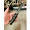 manche en corne d'antilope, mitre en laiton polie, et pommeau en loupe d'acacia
