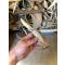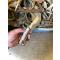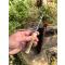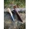 manche en bois de cerf, avec incrustation de plume de bécasse ( plume du peintre ) noyée dans de l'époxy cristal