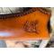 le fourreau est collé et cousu main aux points de sellier et teinté chêne clair patiné