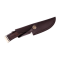 Lame très solide en Droppoint robuste et élégante. Manche en noyer américain de haute qualité, mitre et garde en laiton