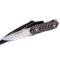 Couteau à lame fixe en acier inoxydable AN.58 (dureté 58-60 Rockwell) avec un manche en katex brun et noir avec liserés rouges, travaillé de manière à assurer une très bonne prise en main, trou pour cordon. Livré avec un étui de ceinture en cuir noir. Long.totale 21,5 cm Longueur de lame 10 cm Epaisseur de lame 4 mm Poids du couteau seul : 165 gr