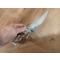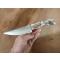 couteau de chasse lame forgée en acier carbone manche en résine et plusieurs plumes de bécasses