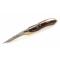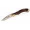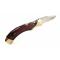 Beau et solide couteau de chasse pliant fabriqué par Muela en Espagne Lame MOVA 9,5 cm, épaisseur 2,9 mm Manche bois stamina rouge, mitres massives en laiton Longueur totale : 21,3 cm Longueur plié : 12 cm Poids : 175 Gr