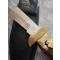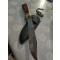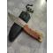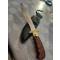 Couteau de cheval avec etui en cuir tet de cheval sur le dessus, manche bois et laiton,lame inox, logueur total deplier;43 cm, fermer;30.5 cm hors de frais de port