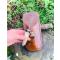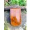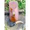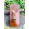 la pochette est collé et cousu mains aux points de sellier et teintée fauve patiné marbré