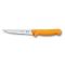 Série Swibo : des couteaux professionnels Victorinox, convenant aussi bien aux chefs qu'aux bouchers Désosseur à lame rigide - 14 cm Confortable, antidérapant, sans micropores ni microfissures, résistant à la stérilisation. Ses performances de coupe, sa souplesse toujours adaptée à la fonction, sa robustesse et sa longévité lui valent une fidélité indéfectible des spécialistes. Le premier couteau professionnel à manche jaune signal, ergonomique et sûr, hygiénique, injecté sur une lame en acier fin inoxydable poli miroir.
