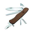 Avec ses 10 fonctions, ce couteau Victorinox ne peut renier son nom, ni son look ! Les côtes en noyer sélectionné lui donnent un air très nature. Il plaira aussi aux chasseurs en raison des outils embarqués, toujours très solides et fiables. Nous retrouvons bien sur une grande lame, très tranchante. Il y a une scie à bois qui permettra de se confectionner un affut ou couper la branche qui vous gêne au poste. Elle vous aidera aussi à ouvrir les cotes d'un chevreuil au besoin… Viennent ensuite un tournevis 5 mm, un décapsuleur, un dénudeur de fil électrique, un ouvre boîtes, un tournevis de 3 mm, un poinçon alésoir, un tire-bouchon et un anneau.