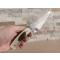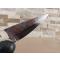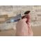 couteau forgé en acier carbone, émouture creuse, trempe à l'huile. Montage en plate de semelle, manche en plaquettes de résine avec incrustation de plumes de canard Souchet. Etui en cuir.