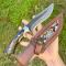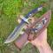 couteau lame fixe acier damas avec étui imitation peau de serpent #269