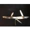Excellent ancien couteau de chasse Bargeon- Arbalète , avec système à pompe arrière pour le blocage de la lame , le manche n'est pas en bois de cerf mais en plastique façon bois de cerf!
