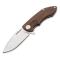 La particularité de ce dossier avec liner lock est le traitement à grande échelle de l'ébène clair de Guyacan sur les deux faces. L'entretoise est aussi en Guyacan.