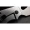 Lame blanche et ouverture manuelle avec le pouce grâce au trou dans la lame.
