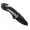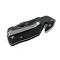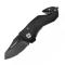 Lame tanto inversée semi-dentée noire en acier inoxydable 440A. Manche aluminium anodisé noir structure antidérapante