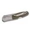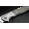 Lame blanche et ouverture manuelle. Les plaquettes du manche sont en micarta couleur olive