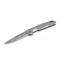 Lame blanche forme slipjoint en acier 8Cr13MoV tranchant lisse, ouverture manuelle avec encoche sur la lame. Manche gris en acier inoxydable