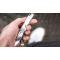 C'est le design qui a motive mon achat de ce couteau. Un fois en main, grande deception: la lame ne s'ouvre qu'au prix d'un effort surhumain sur le flipper, otant toute utilité au systeme d'assistance (une fois, qu'on a placé un chiffon pour proteger le pouce et qu'on a developpé a deux mains 130 kg de pression au cm2, on peut bien ouvrir la lame jusqu'au bout).