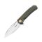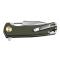 Le manche en plaquettes G10 vert est antidérapant avec fraisage et texture fine en forme de peau de reptile avec trou à l'arrière.