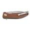 Le manche en plaquettes de micarta marron est antidérapant avec fraisage et texture fine avec trou à l'arrière.